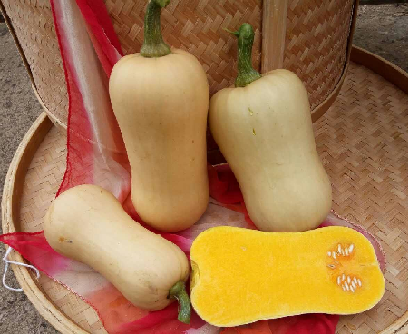 Plants vines,harvesting 95 days after sowing,. first female flower set on the eighth to tenth node, fruits setting easily. Fruits are flat round,weigh 1.5-2kgs, fruit skin is white grey in maturing. Flesh thickness is 2-3cm, sweet and glutinous,delicious. Suitable for open field planting.