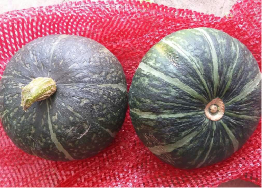 Long vine type. High round fruit weighs about 1.5kgs. pre-maturing stage with green stripes, and the green stripes will disappear during the maturing period. Quality fruits, delicious and sweet.